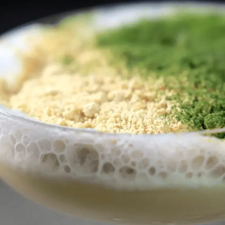 Prendete il latte, inserite la bacca di lemongrass e portate il latte con la bacca a 65 gradi in una casseruola, filtrate e fate raffreddare.