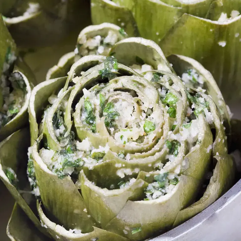 Scolate i carciofi e allargate leggermente le foglie. Farcite i carciofi con il ripieno.