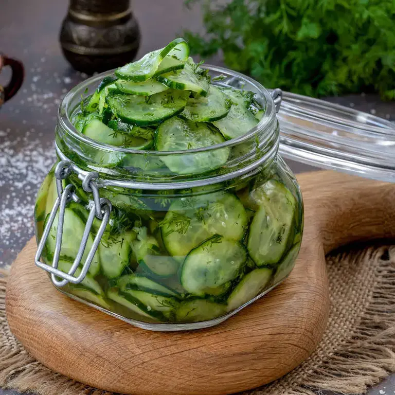 Conserva i barattoli in frigorifero, dove i cetrioli in agrodolce possono mantenersi freschi e saporiti per circa 2-3 settimane.