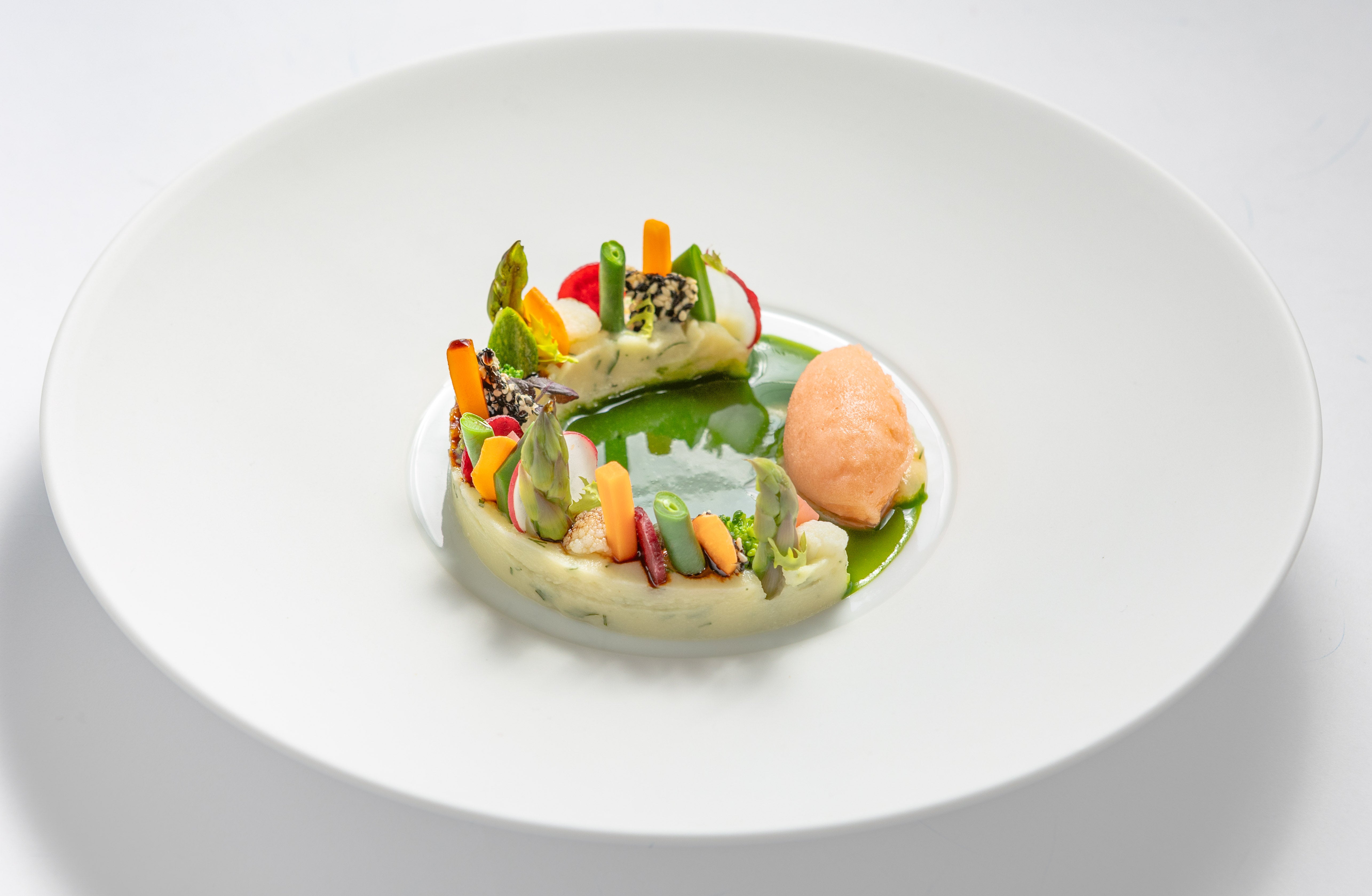 "Le verdure cotte e crude con coulis alle erbe, melassa di fichi e sorbetto all’arancio e zenzero sono una vera e propria ode al perfetto equilibrio, in un trionfo non solo per il palato, ma anche per gli occhi - spiega lo chef di Borgo San Jacopo, 1 stella Michelin a Firenze - un piatto che celebra l'armonia tra la freschezza del crudo e la delicatezza del cotto".