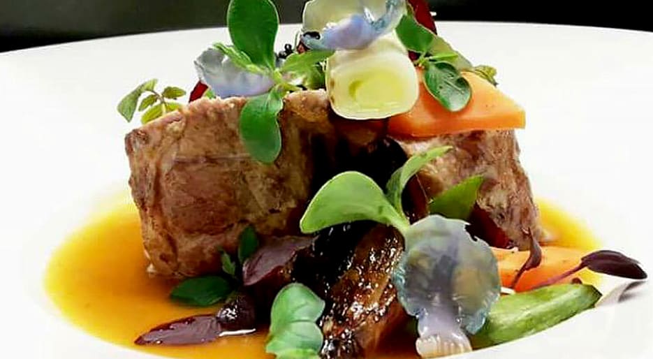 Come preparare il Filetto di Cinta Senese con verdure e germogli sul suo fondo di cottura