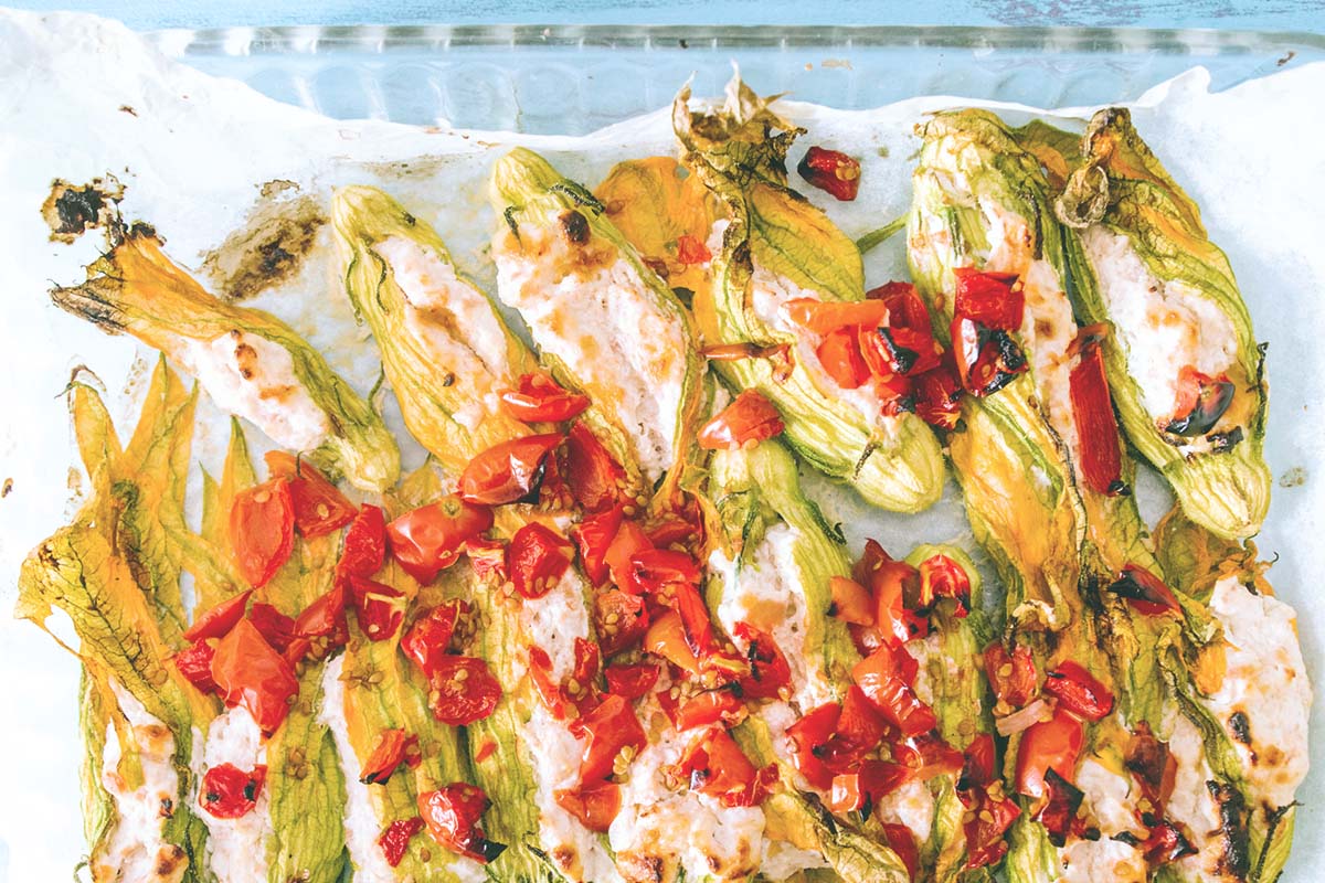 I fiori di zucca ripieni al forno possono essere anche preparati inserendo all’interno un filetto di acciuga che donerà un sapore ancora più interessante a questo piatto semplice ma delizioso. Se invece siete amanti delle ricette vegane, farcite i vostri fiori con una crema grossolana di zucchine crude e menta.