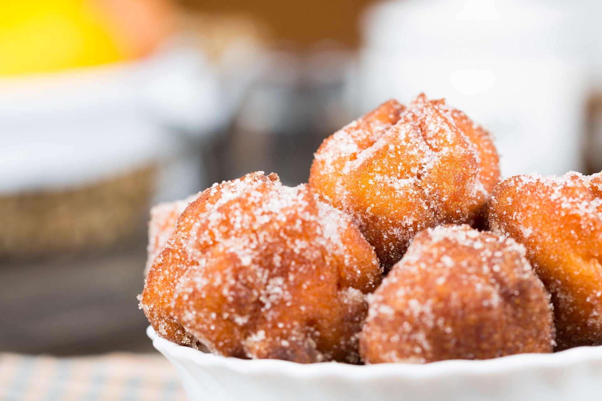 Quando diventeranno gonfie e dorate, trasferitele su un foglio di carta assorbente per eliminare l’eccesso d’olio. Passatele poi nello zucchero semolato e servite subito!