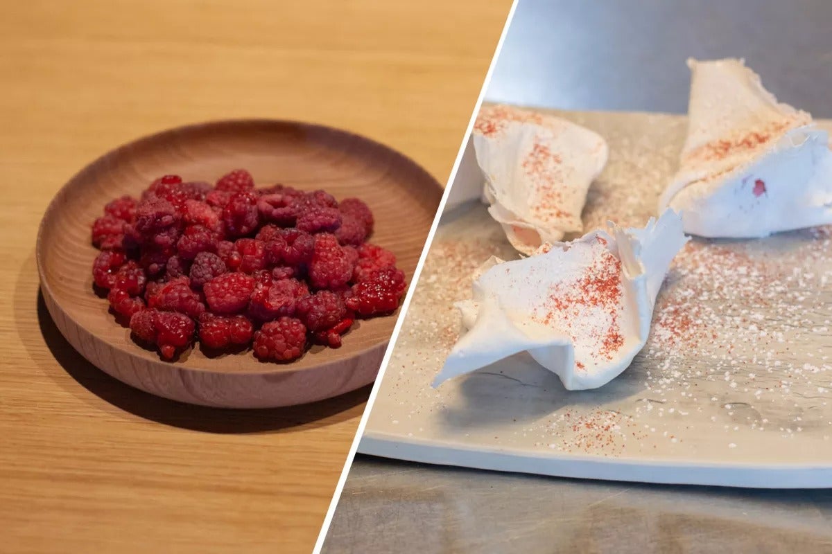 Anche alla Maison Troisgros, tre stelle Michelin, a volte si dimenticano della frutta in dispensa e in qualche modo devono recuperarla. Questa è una soluzione semplice ma elegante per consumare i lamponi (o qualsiasi altro frutto di bosco) ormai troppo maturi che puoi replicare anche nella tua cucina.