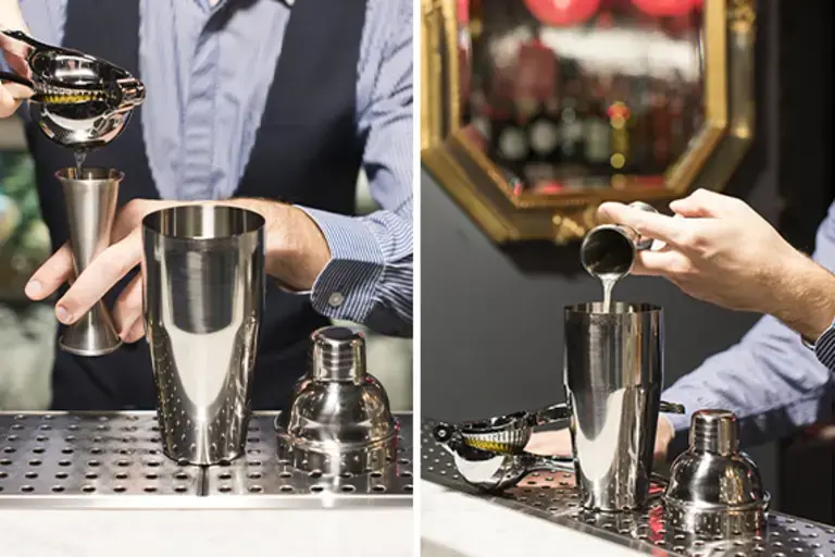 Spremere 1 OZ (30 ml) di limone, utilizzando lo spremiagrumi manuale, direttamente nel jigger, per verificare la quantità esatta, e versarlo nello shaker.
