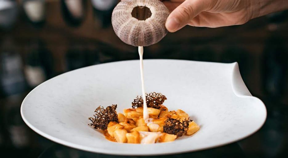 Gnocchetto ai ricci di mare, bianco di mandorla e caffè