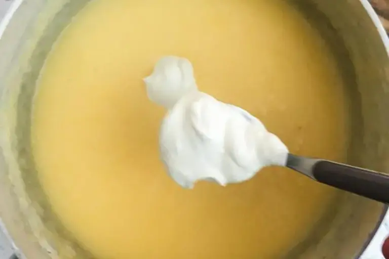 Aggiungete la panna e amalgamate il tutto con la frusta. Eliminate la foglia di alloro.