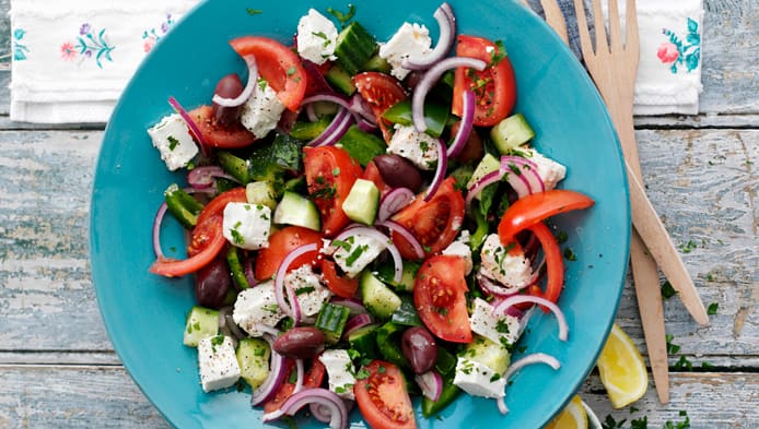 L'insalata greca originale è quel delizioso mix di feta, pomodoro, cetriolo e olive che la rendono uno dei piatti estivi freschi più veloci e gustosi.