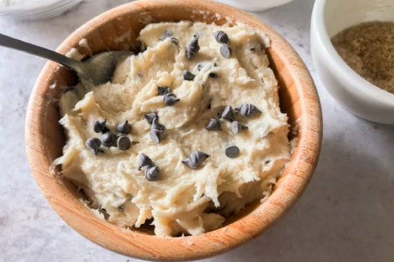 La pasta biscotto o impasto per i cookies senza uova è semplicissimo da realizzare e potrete anche mangiarlo senza infornarlo. Negli Stati Uniti si chiama Edible Cookie Dough e può essere arricchito con gocce di cioccolato, come i classici cookies, ma anche con cannella, aroma alla vaniglia, zenzero e altri ingredienti a piacere. Per preparare l’impasto dei cookie senza uova da mangiare crudo, è necessario scaldare la farina a microonde per 60 secondi in modo da renderla digeribile. Preparare questo impasto è molto semplice, ecco gli ingredienti e tutti i passaggi per farlo.