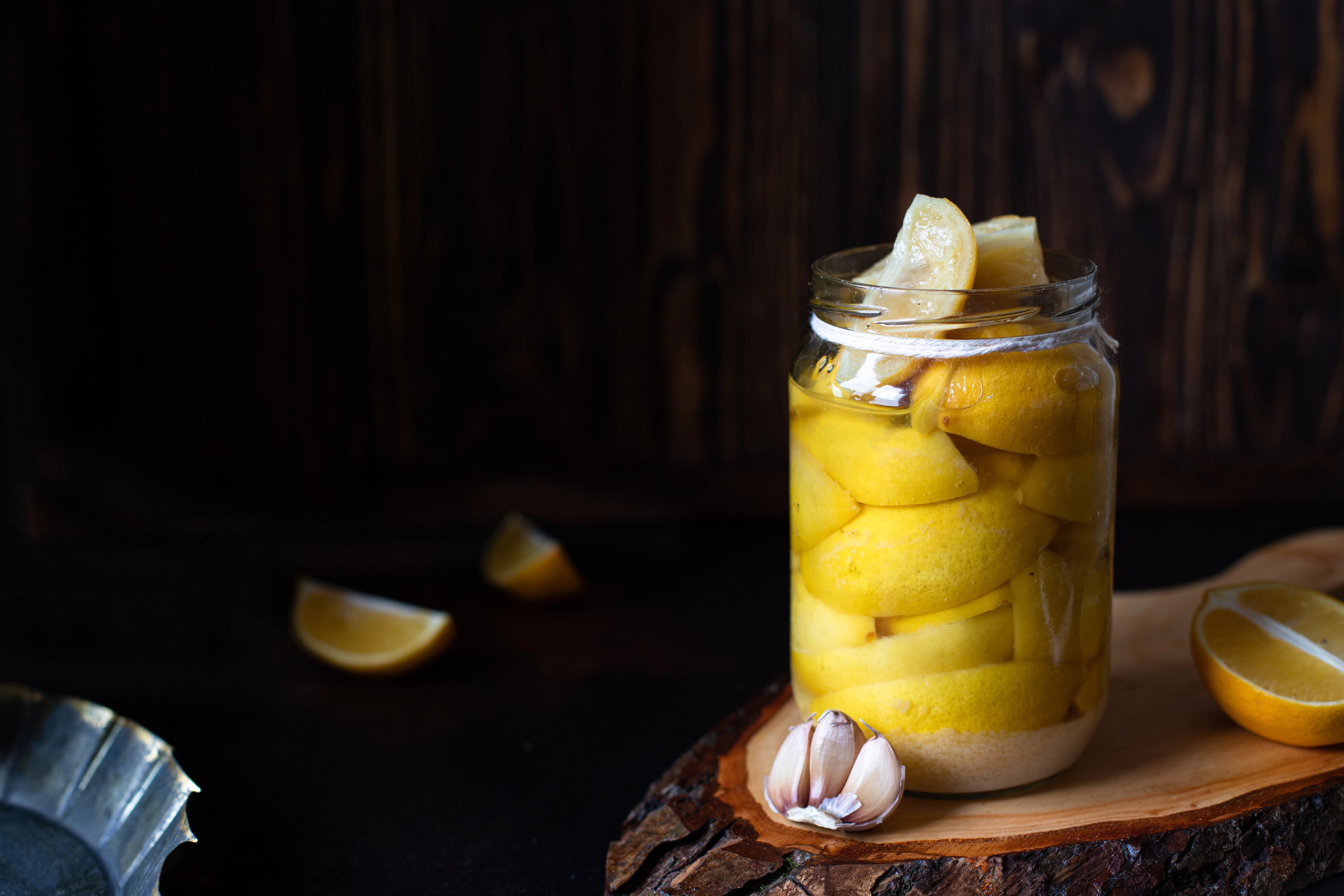 Per un buon limone fermentato è essenziale partire da limoni non trattati, con buccia sana e profumata: è proprio la buccia, più che la polpa, a essere protagonista nelle ricette. Il sale marino grosso va dosato con generosità, perché svolge una doppia funzione: favorisce la fermentazione e contribuisce alla conservazione a lungo termine.