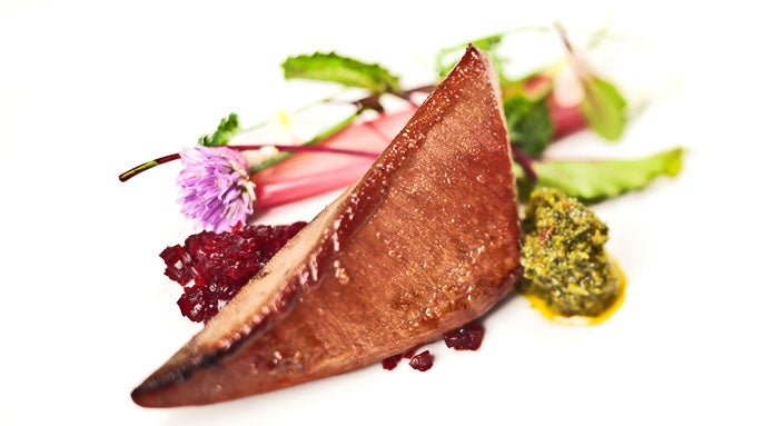 Lingua di Vitellone Caramellata con Rapa Rossa alla Senape e Rabarbaro: la chef Aurora Mazzuchelli svela la sua ricetta.