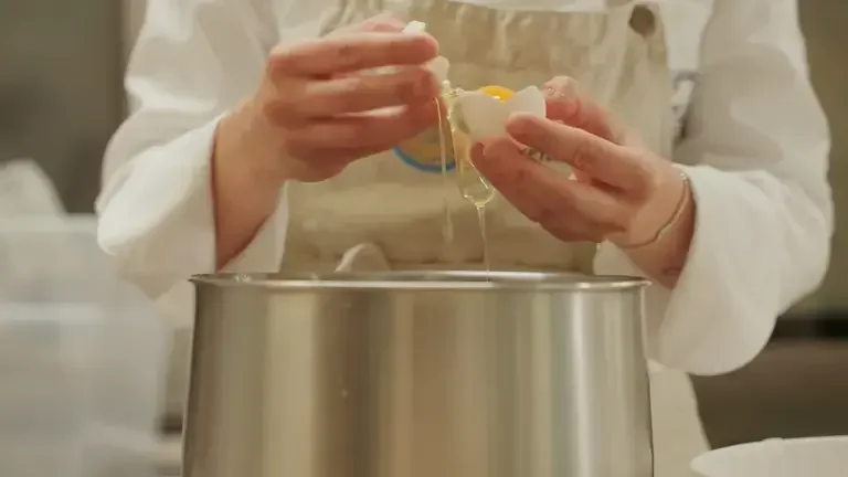 Prepara la meringa all’italiana. Versa gli albumi nella ciotola della planetaria, facendo attenzione a non lasciare tracce di tuorlo. Inizia a montarli a velocità media: devono diventare bianchi e spumosi, ma non ancora completamente montati.