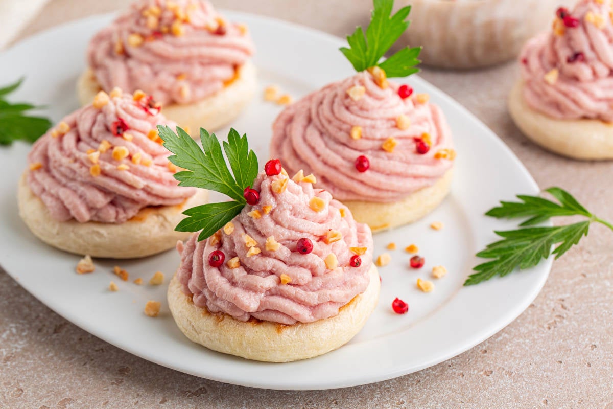 La mousse di mortadella è una farcitura versatile. Puoi usarla in versione rustica, spalmata su fette di pane tostato, bruschette o crackers. E può essere il ripieno di raffinati vol-au-vent e canapé natalizi.