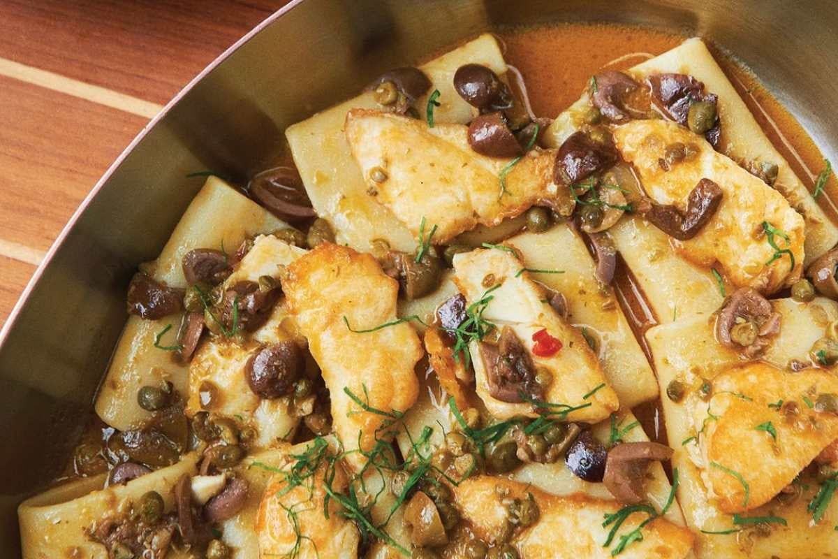 I paccheri con branzino sono uno dei piatti signature di Langosteria Bistrot a Milano. La ricetta con olive, capperi, limone e un crumble di peperoncino, è spiegata passo passo dallo chef Donato di Giuseppe che l'ha condivisa con Fine Dining Lovers.