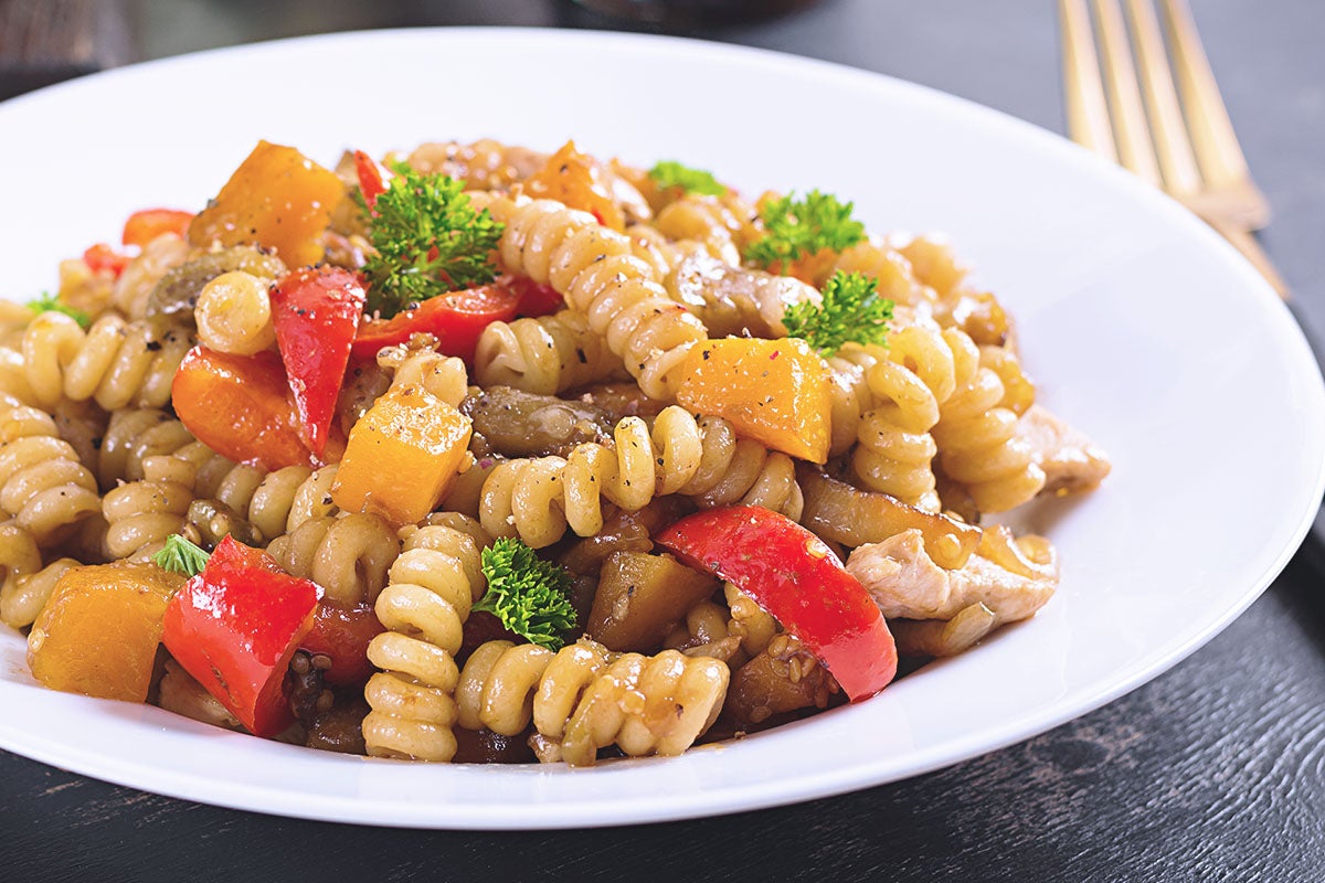Una ricetta per l'estate: scopri la pasta con peperoni alla siciliana, arricchita di olive e basilico per un sapore fresco e gustoso.