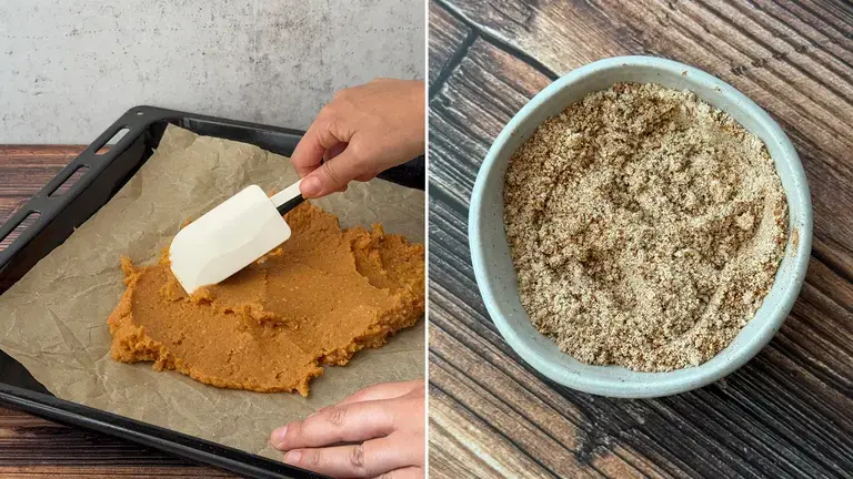 Stendi il miso bianco su fogli di carta forno e lascialo asciugare in forno a 70°C per circa 8 ore. Una volta asciutto, frullalo fino a ottenere una polvere fine.