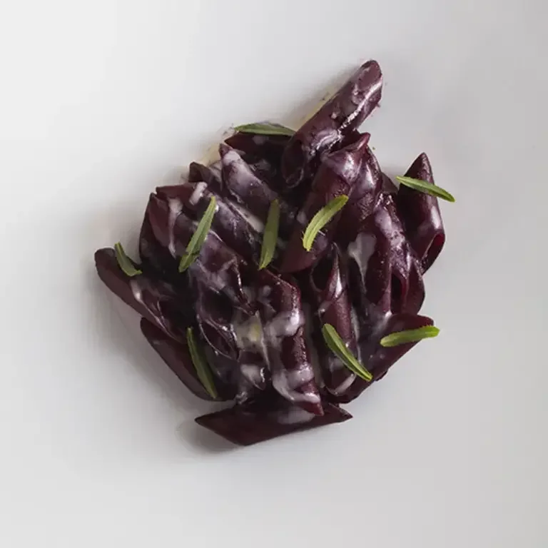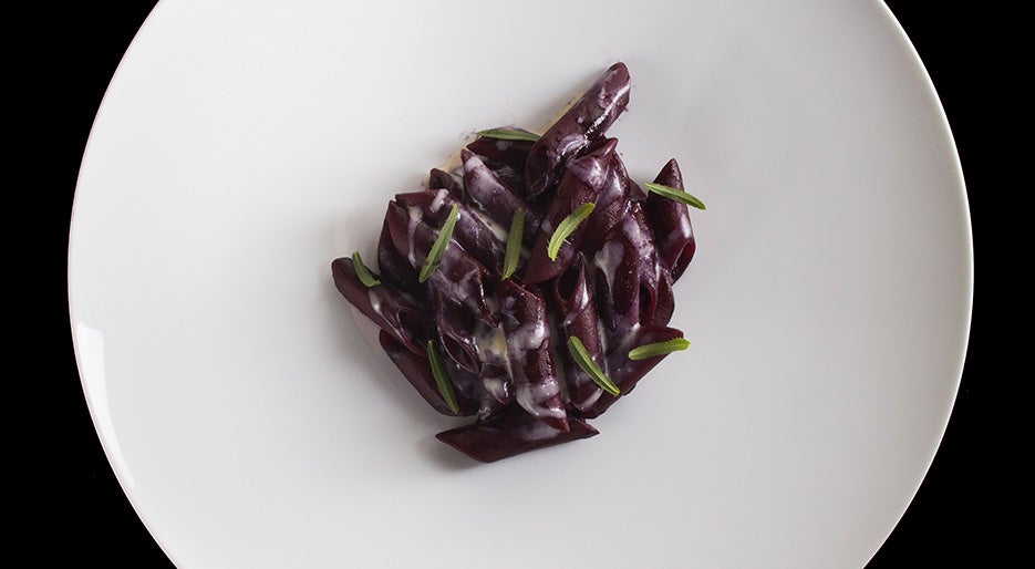 Una ricetta vegetariana dello chef Davide Caranchini, direttamente dal suo ristorante Materia di Cernobbio. Le penne con mirtilli e... tanto altro.