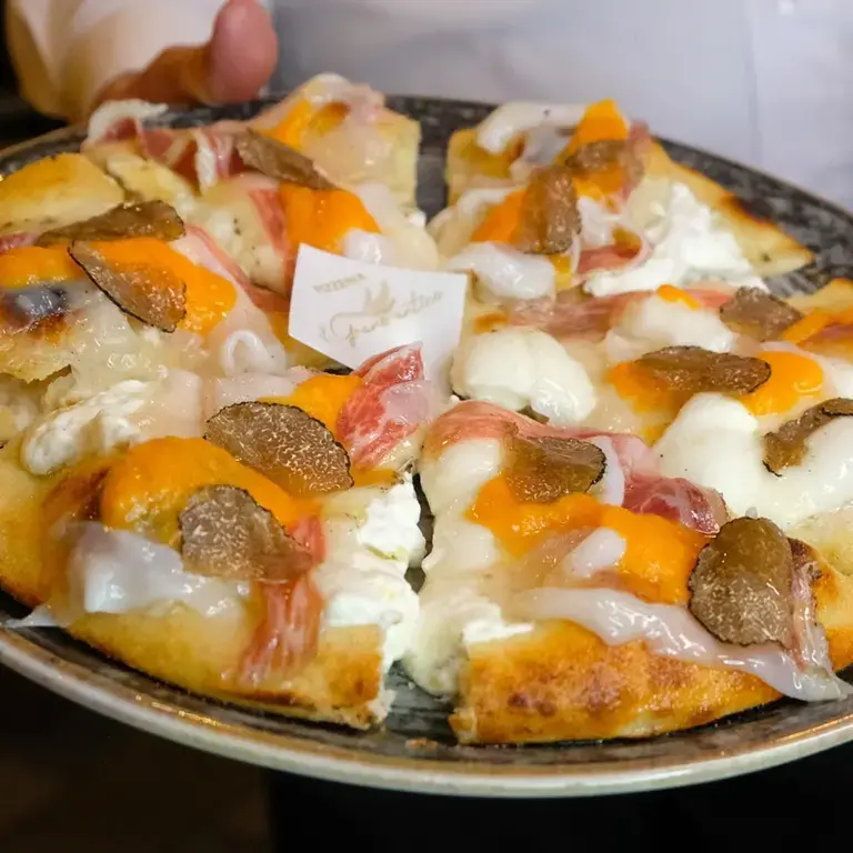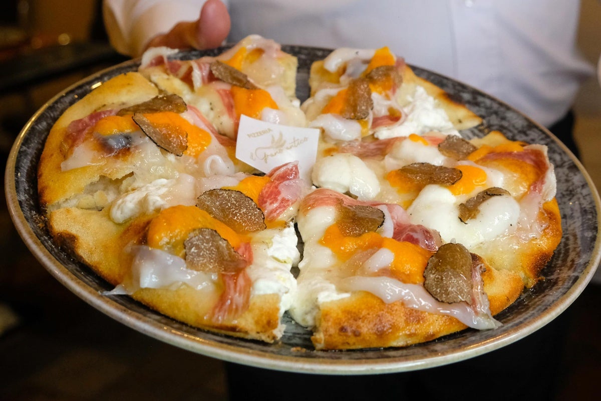 Lievito madre di 26 anni, attenta selezione all’impasto e una materia prima d’eccellenza: ecco la pizza Il Diamante della Natura de Il Grano Antico a San Pietro a Sieve (FI).
