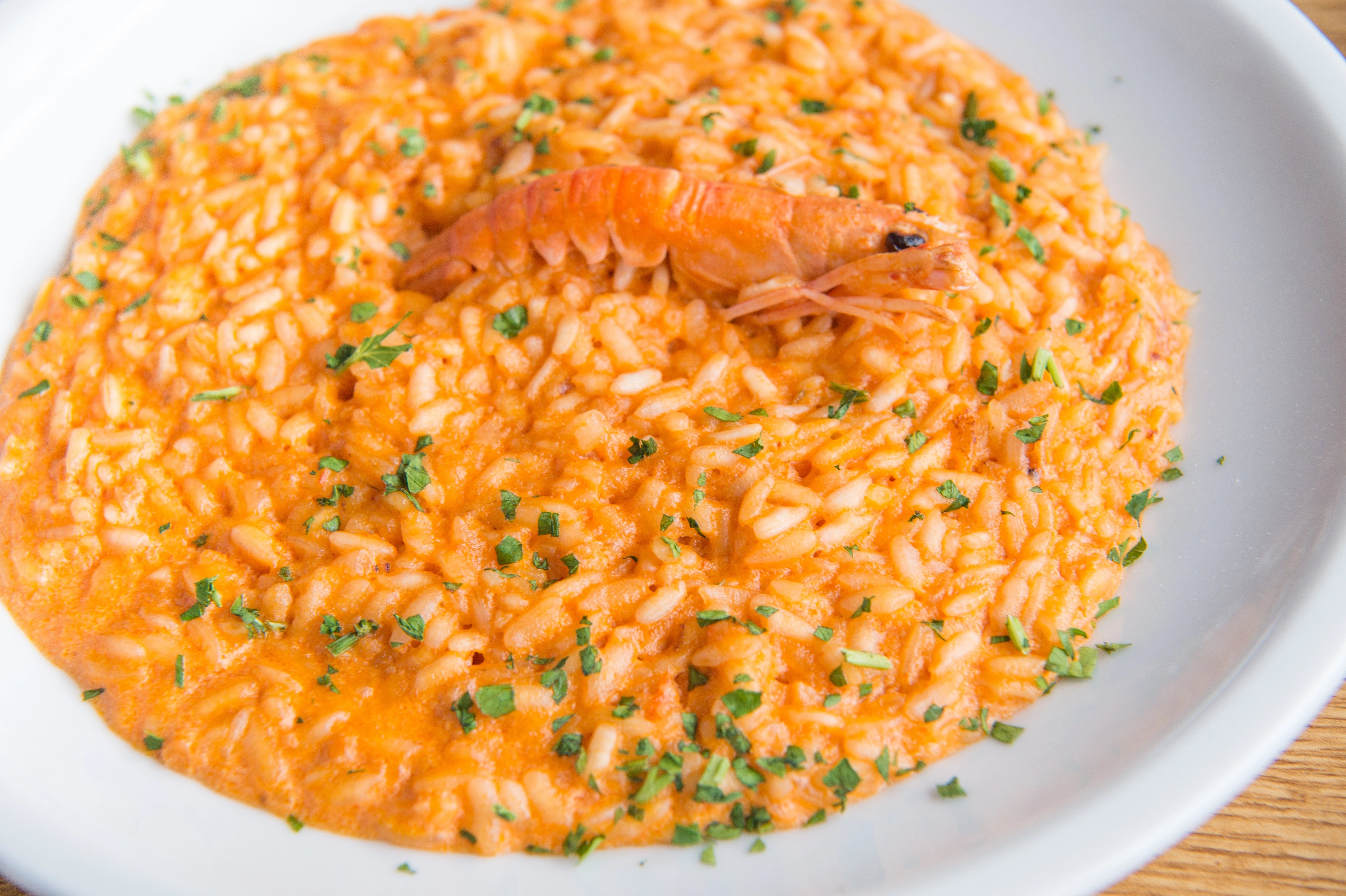 Per un effetto scenografico, impiatta il risotto con un anello da cucina, guarnendo con scampi interi scottati o leggermente grigliati, una spolverata di scorza di limone e un filo d’olio a crudo.