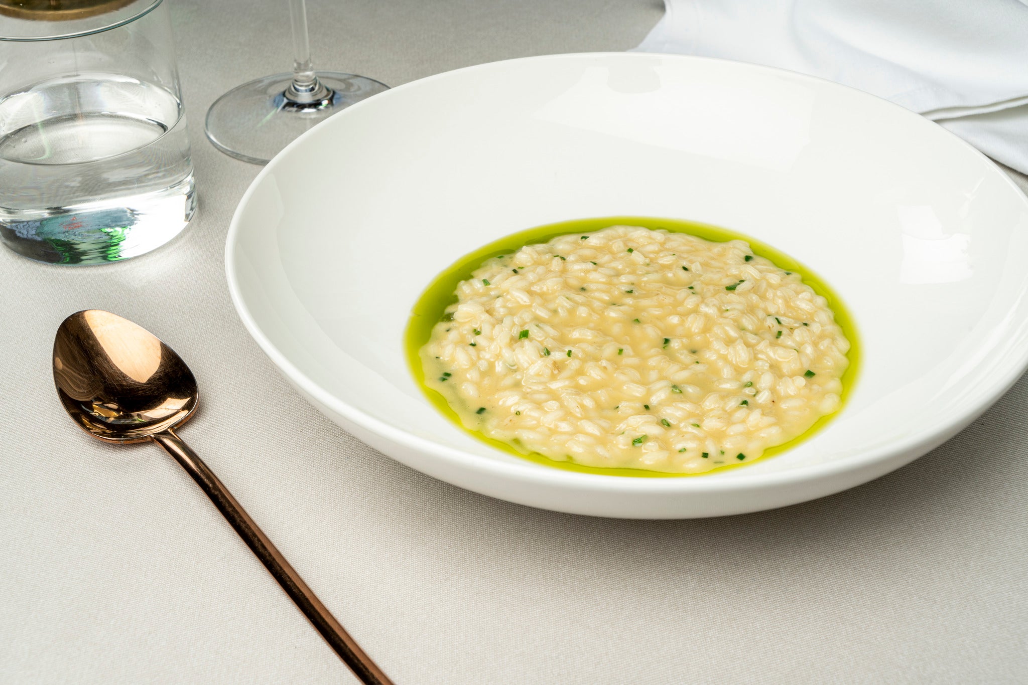 Portatelo a cottura e mantecatelo con il burro acido e l’erba cipollina, qualche goccia di olio affumicato e l’olio al limone.