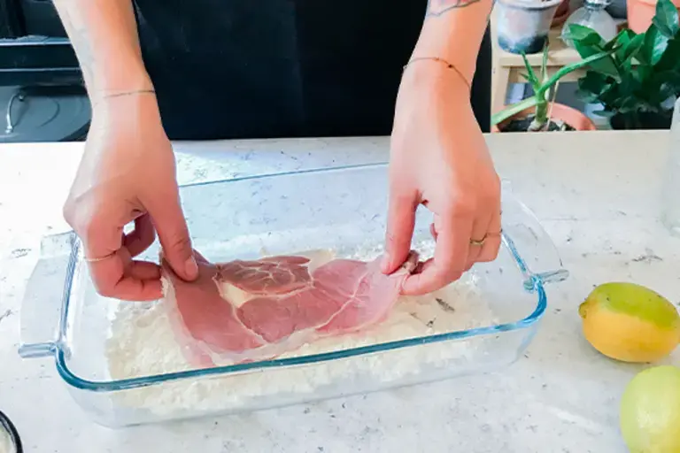 A questo punto infarinate bene le fettine di vitello ed eliminate la farina in eccesso.