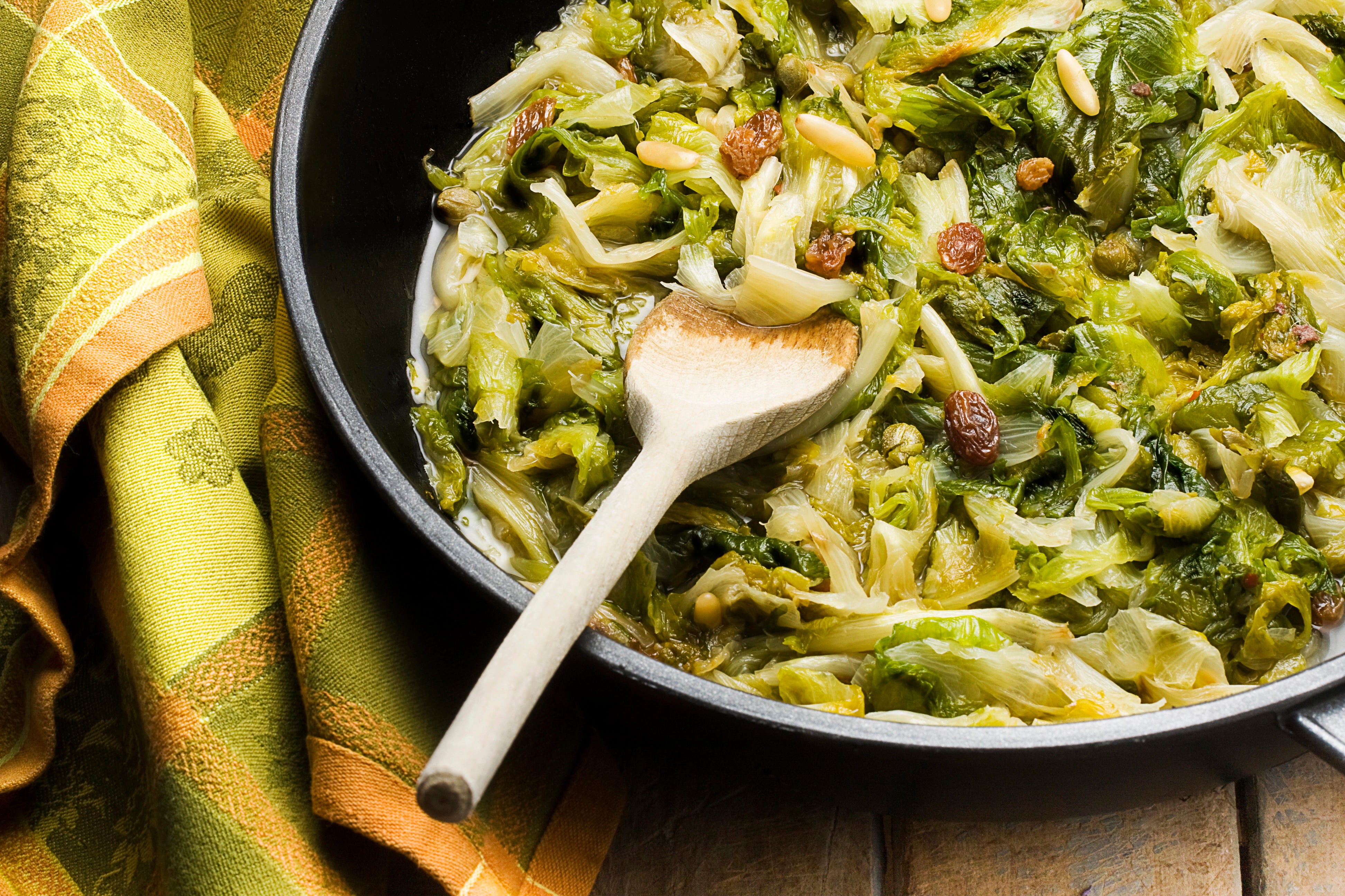 In versione più semplice, senza acciughe, può accompagnare anche piatti vegetariani a base di legumi o cereali in chicco, entrando in insalate tiepide o piatti unici. Per una variante più ricca, si possono aggiungere pinoli leggermente tostati e uva passa ammollata, richiamando alcune interpretazioni di scarola stufata tipiche del Sud Italia.
