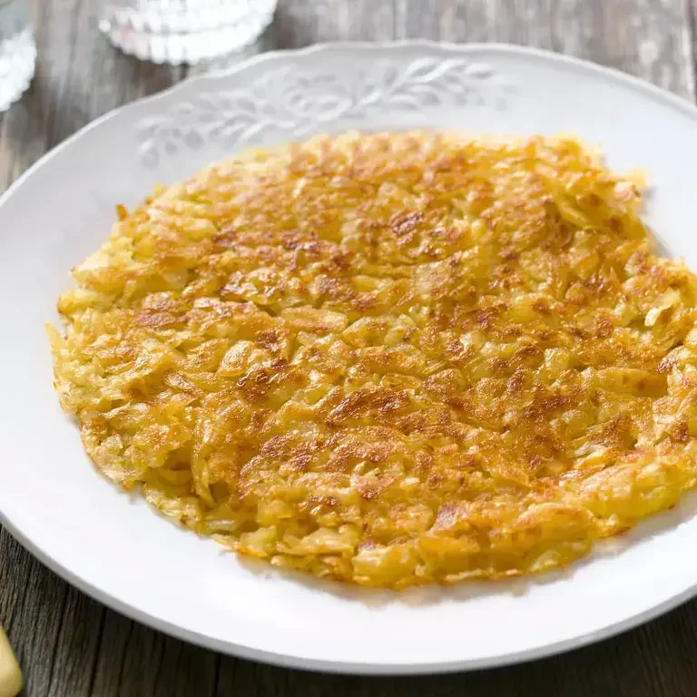 Se invece preferisci cucinare la schiacciata di patate in padella, riscalda un filo d'olio in una padella antiaderente. Stendi il composto nel tegame antiaderente e cuocilo a fuoco medio per circa 10 minuti per lato, finché non sarà ben dorato e croccante su entrambi i lati.