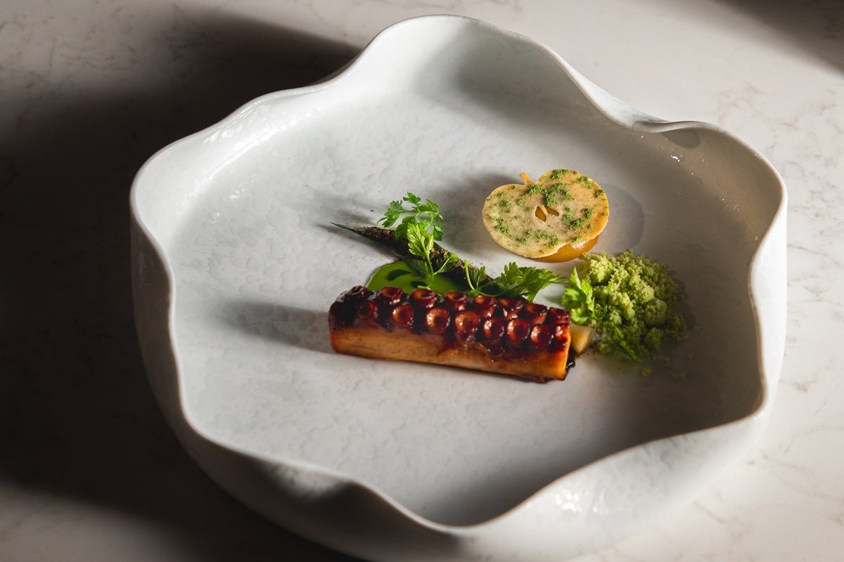 Una ricetta dai sapori mediterranei che incontrano quelli di terre lontane, dal teriyaky di porro al chutney di mela. Ecco Polpo, porro e mela di chef Nicola Annunziata del ristorante I Portici.