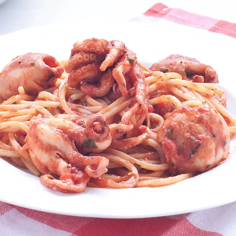 Gli spaghetti con polipetti alla napoletana sono una deliziosa rivisitazione della classica ricetta del polpo alla Luciana. In questa variante con pasta, l'antica sapienza culinaria di Napoli viene adattata per creare un condimento irresistibile per gli spaghetti. I polipetti, con la loro consistenza tenera e il sapore di mare, vengono cucinati seguendo la tradizione del polpo alla Luciana, con l'aggiunta di pomodori pelati al posto dei pomodorini, aglio, e aromi mediterranei. Questo felice abbinamento tra spaghetti e polipetti è un omaggio alla creatività e alla versatilità della cucina napoletana.
