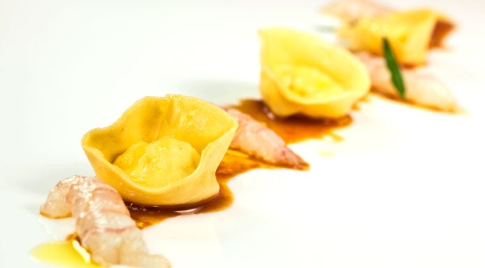 Nicola Fossaceca, chef del ristorante Magnolia di San Salvo Marina, ci propone i suoi Tortelli di Ricotta di Pecora in Brodetto Sansalvese e Scampi.