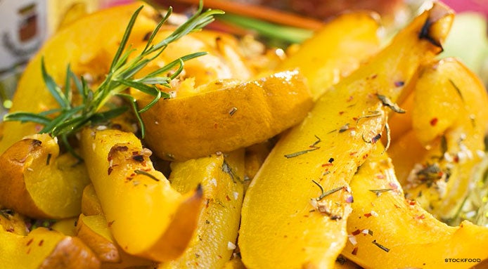 - Salate e pepate e cospargete la zucca con aghi di rosmarino.
