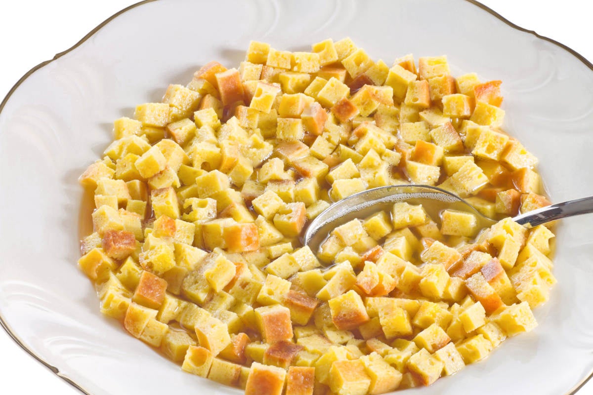 In tutti i casi, il consiglio è di fare sempre attenzione a tagliare la mattonella di semolino in dadini abbastanza piccoli perché quando poi vengono tuffati nel brodo, assorbono liquido e gonfiandosi aumentano di volume.