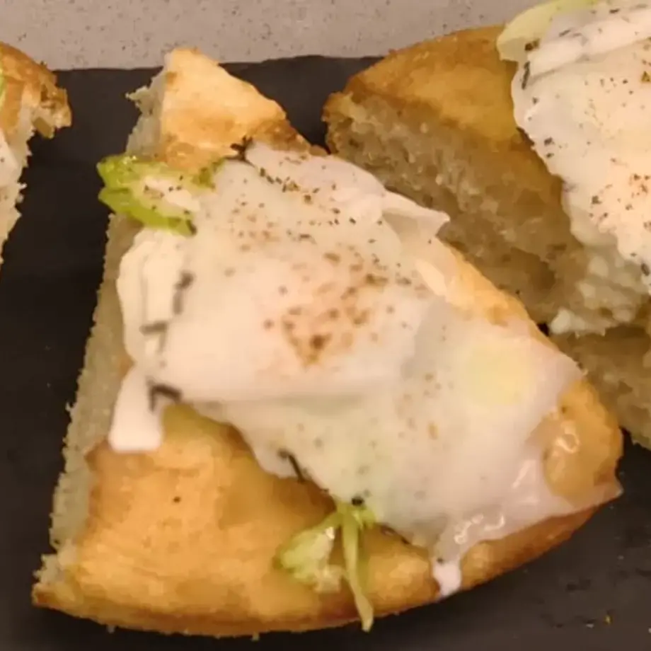 Nuvola di pane con crema di zucca biologica, fior di latte, salsiccia di maialino nero saltato in padella, porri biologico