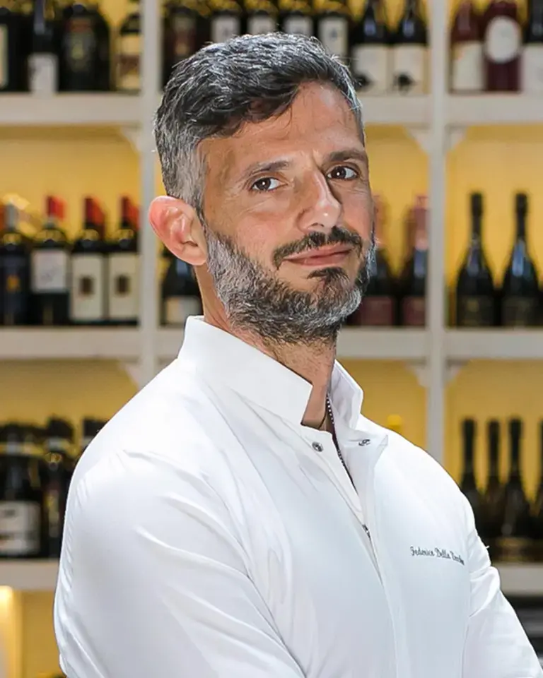 Appassionato di cucina e di arte bianca, Federico Della Vecchia unisce queste due passioni nel suo lavoro di chef executive per il brand Bioesserì. Ogni piatto è frutto di un'attenta ricerca d’ingredienti e collaborazioni con produttori che scelgono di operare nel rispetto dell’ambiente e della salute. Questa materia prima è usata per creare piatti ispirati ai grandi classici della tradizione italiana, rivisitati con un tocco contemporaneo e personale. Anche le pizze sono per lui un modo per esprimere la sua creatività culinaria: il menù di Bioesserì propone i grandi classici, ma anche pizze speciali con ingredienti selezionati di altissima qualità. Preparata con impasti a lunga lievitazione e farine macinate a pietra, le pizze di Della Vecchia mettono insieme gusto e digeribilità. Un esempio rappresentativo è la pizza Identità, una margherita arricchita con salsa di pomodorini Pachino, mozzarella di bufala, basilico fresco e una spolverata di Pecorino Romano. Questo mix d’ingredienti unisce dolcezza, sapidità e cremosità, per una versione rivisitata della classica pizza margherita, che conquista per la sua semplicità ma al contempo per il suo gusto sorprendente.