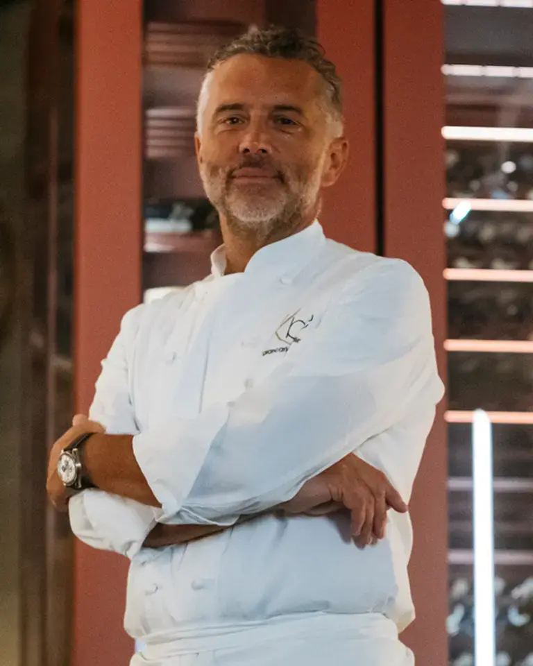 Nella sua lunga carriera di chef, la cucina di Giancarlo Perbellini è stata in continua evoluzione. Cuoco “artigiano”, appassionato ed esploratore, Perbellini ha saputo prendere ispirazione dalla cucina tradizionale, italiana e internazionale, per sviluppare uno stile profondamente personale, pur restando classico. Lo chef ha iniziato la sua formazione in pasticceria, apprendendo un savoir-faire che ha segnato profondamente il suo approccio alla cucina, tecnico, rigoroso e preciso. La sua visione gastronomica sfida le convenzioni, privilegiando la sostanza del piatto rispetto alla sua estetica. Il processo creativo parte da materie prime selezionate con accuratezza, nel rispetto della stagionalità e del territorio, per sviluppare piatti dagli interessanti contrasti di sapore, che stimolano il palato e permettono di vivere esperienze gastronomiche uniche.