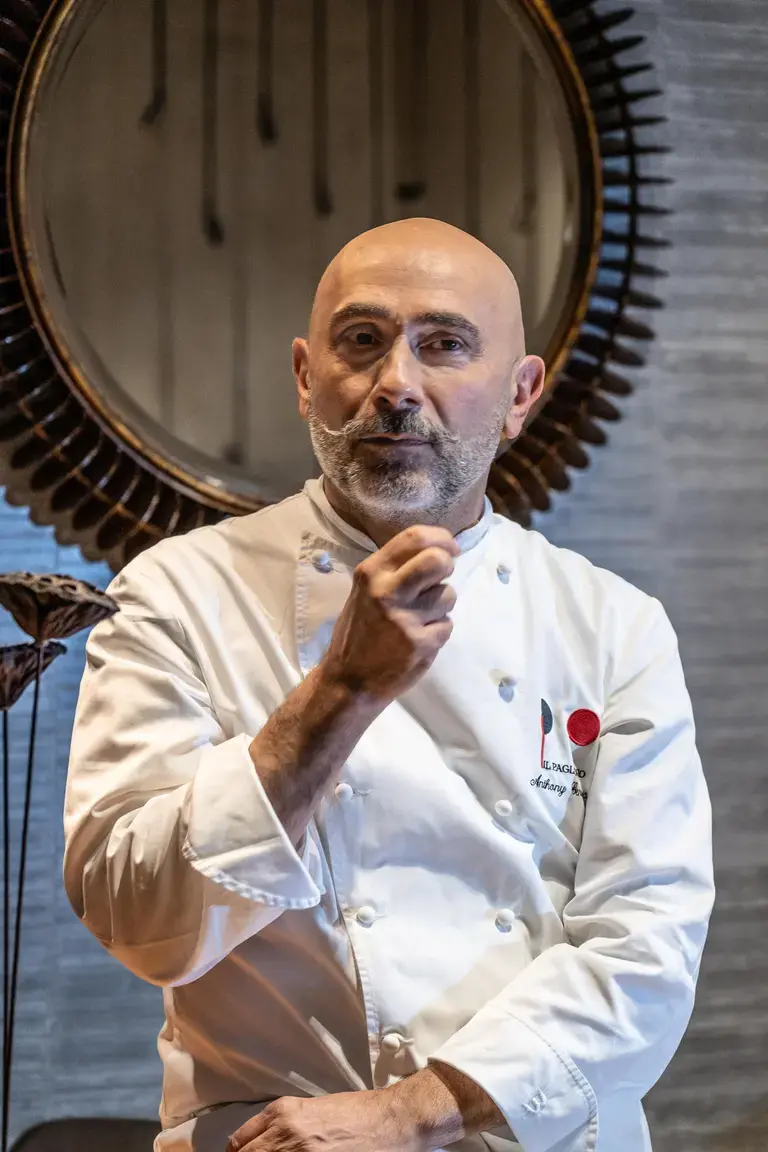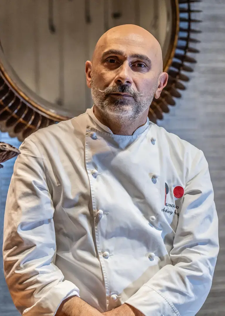 Alla guida della cucina c’è Anthony Genovese, chef di origini calabresi nato in Francia, che dal 2003 ha trasformato Il Pagliaccio in una delle realtà gastronomiche più apprezzate in Italia e all’estero. Dopo un percorso formativo in ristoranti di prestigio come l’Enoteca Pinchiorri e esperienze in Giappone, Malesia e Thailandia, Genovese ha sviluppato una cucina che riflette il suo bagaglio culturale e la sua sensibilità gastronomica.