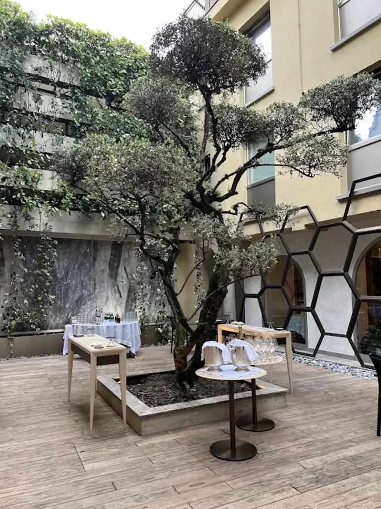 Gli ambienti, luminosi e raffinati, esprimono un equilibrio armonioso tra essenzialità e calore. In sala, Paolo Colleoni accoglie con entusiasmo contagioso e naturale savoir-faire, guidando l’ospite con discrezione e competenza. In cucina, Stefano Locatelli interpreta con mano sicura i grandi classici della casa – frutto di una storia stellata – accanto a creazioni più contemporanee.